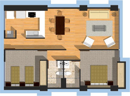 Duela laminada en estancia y alfombra en